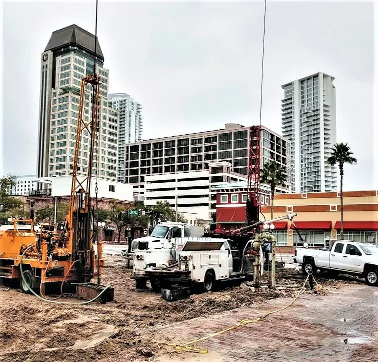 ATI Drilling Geotech Drilling and Sampling for the structure foundations design, with a minimum of one boring per structure unit for the New Apartment Tower Building in downtown St. Petersburg.