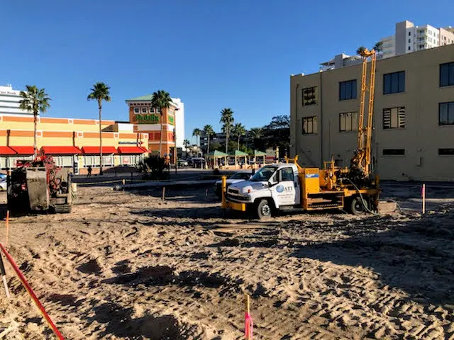 ATI Companies conducted the Geotechnical Drilling and Sampling for the Site Investigation at the 334 New Tower Building in Downtown St. Petersburg. The purpose was Geotech Drilling and Sampling for the structure foundations design, with a minimum of one boring per structure unit for the New Apartment Tower Building in downtown St. Petersburg.