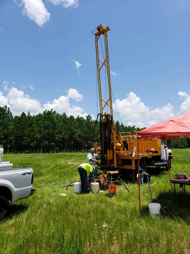 A Truck Mounted CME 45B with automatic hammer was used to drill 20 SPT borings to 80 ft and one to 30 ft with sampling every 10 feet. Installation of 30’ PVC casing provided the capability to take Borehole Geophysical readings.